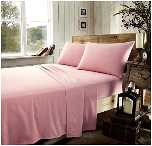 GC GAVENO CAVAILIA Brushed Cotton Bed Sheets, Flannelette Fitted Sheet With Pillowcases, Plain Flat Sheet Double, Pink