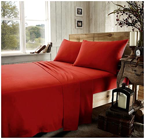 GC GAVENO CAVAILIA Brushed Cotton Bed Sheets, Flannelette Fitted Sheet With Pillowcases, Plain Flat Sheet Double, Red