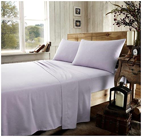 GC GAVENO CAVAILIA Brushed Cotton Bed Sheets, Flannelette Fitted Sheet With Pillowcases, Plain Flat Sheet Double, Purple, Plain Purple (671039)