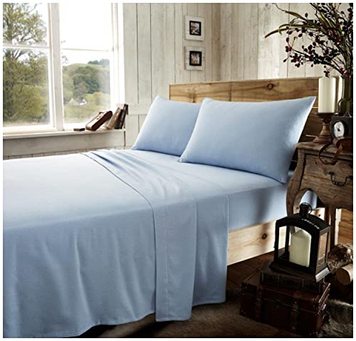 GC GAVENO CAVAILIA Brushed Cotton Bed Sheets, Flannelette Fitted Sheet With Pillowcases, Plain Flat Sheet Double, Blue