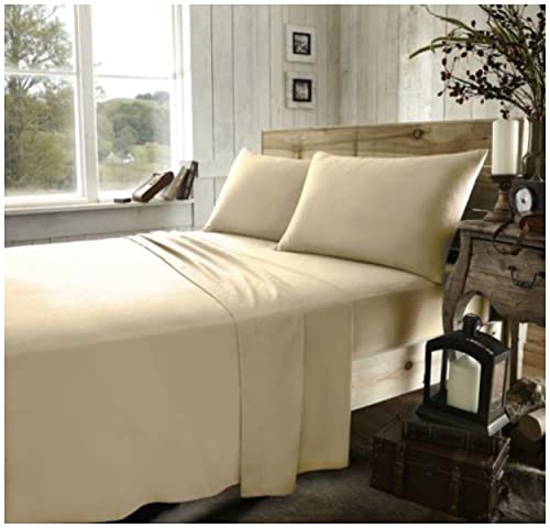 GC GAVENO CAVAILIA Brushed Cotton Bed Sheets, Flannelette Fitted Sheet With Pillowcases, Plain Flat Sheet Double, Latte