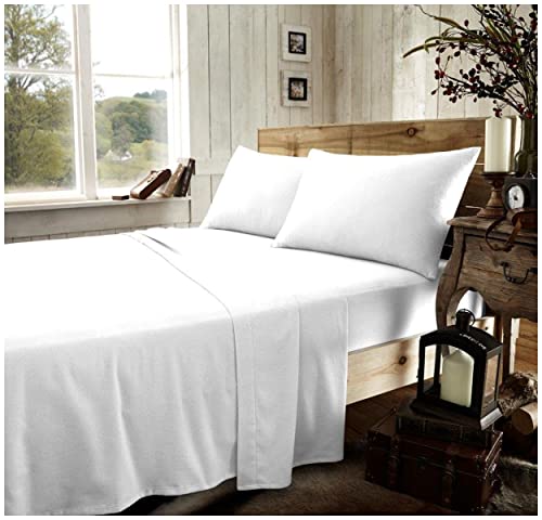 Flannelette Fitted Sheets Single, Warm & Cosy Plain Bedding, Brushed Cotton Top Sheet, White