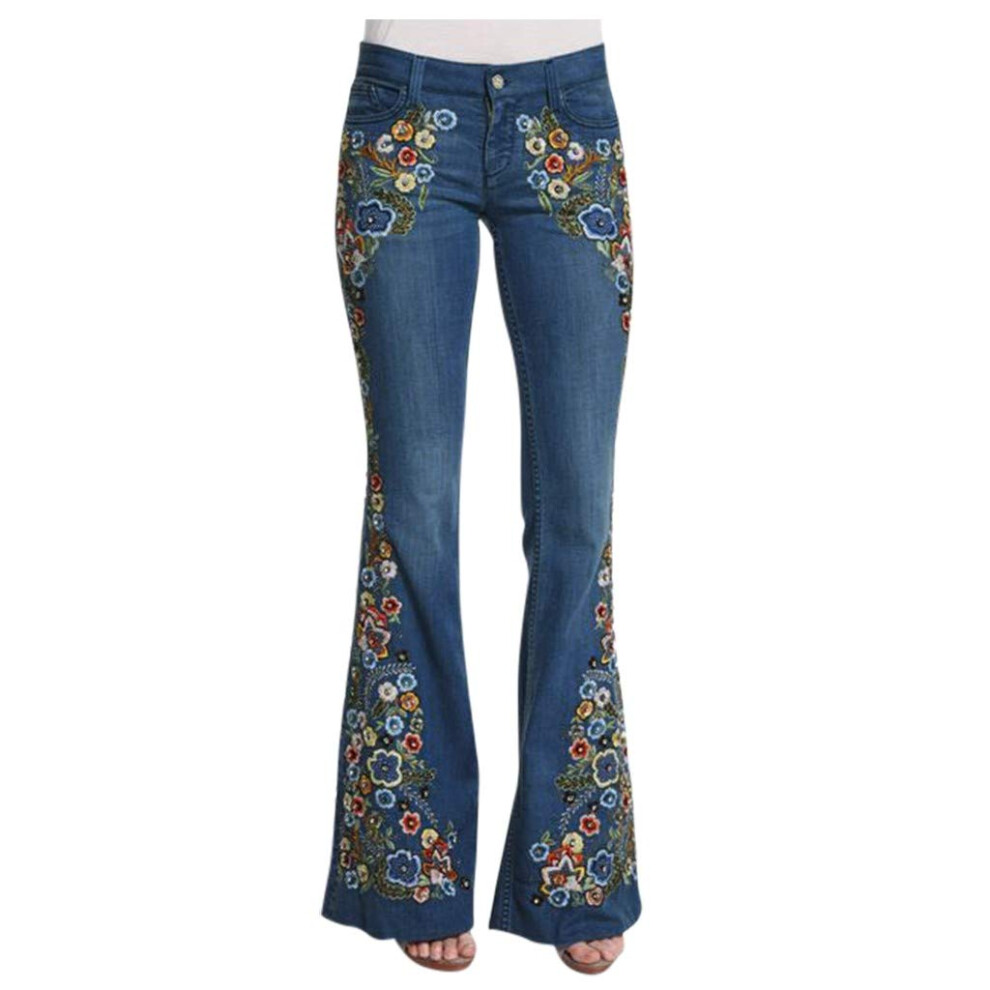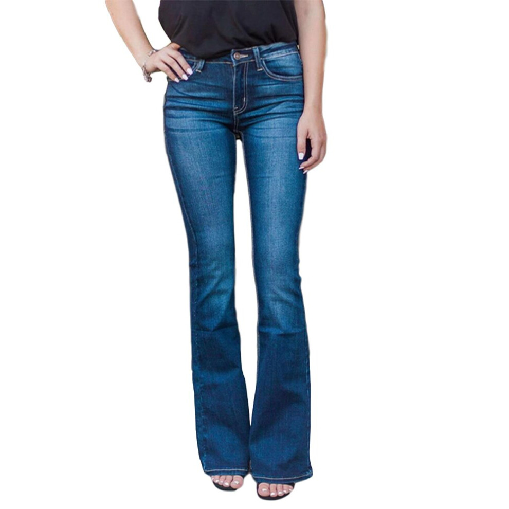 Damen Flare Jeans Vintage Bell Bottoms Waist Stretch Jeggings XL Blue