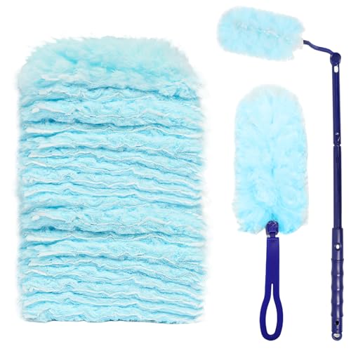 Hanqing 20 Pcs Dust Magnet, Duster Refills, Extendable Duster for Flash and Swiffer, 360 Degree Duty Microfibers Dusting Kit, with 1 Adjustable