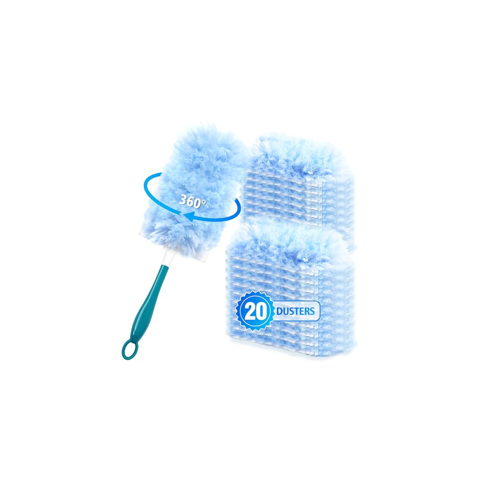 NEWE Dusters for Cleaning with 20 Refills for Flash, Dust Magnet with 1 Handle for Swiffer, 360 Degree Heavy Duty Dusting Kit with 4X Microfibers for