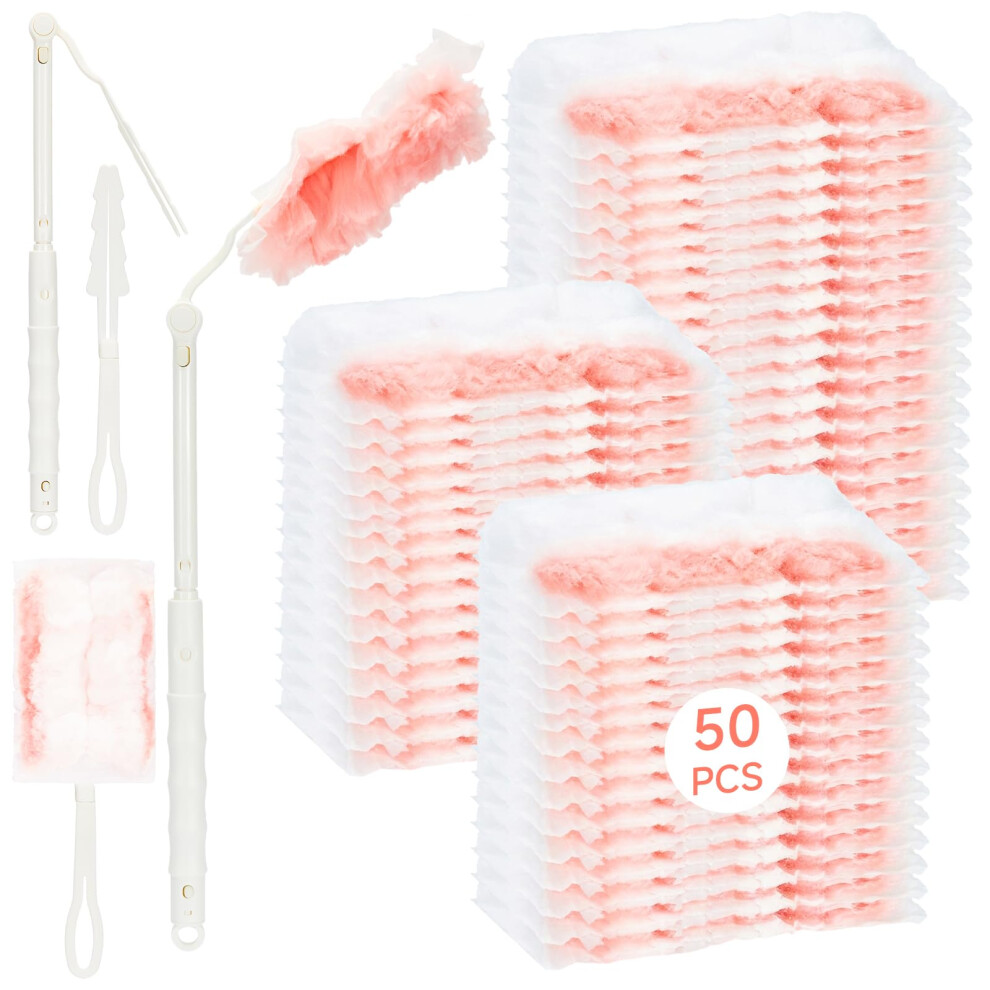 50 PCS Duster Refills Kit Compatible with Flash Dust Magnet, 360° Multi-Surface Duster Replacement with 1 Handle for Cleaning Furniture, Office, Blinds, Car