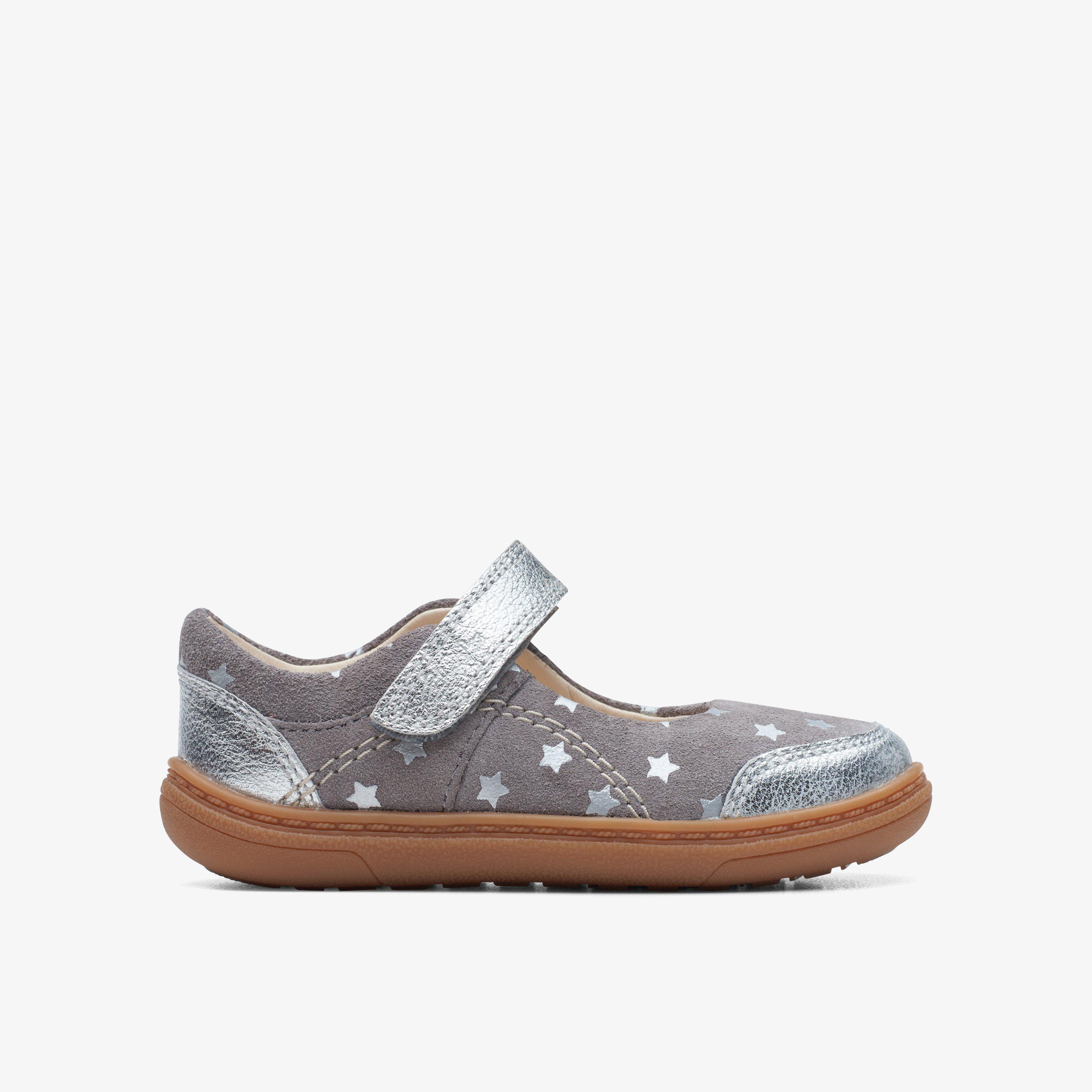 Clarks Girls FlashBright T. Gun Metal Shoes - Grey - Size UK 6