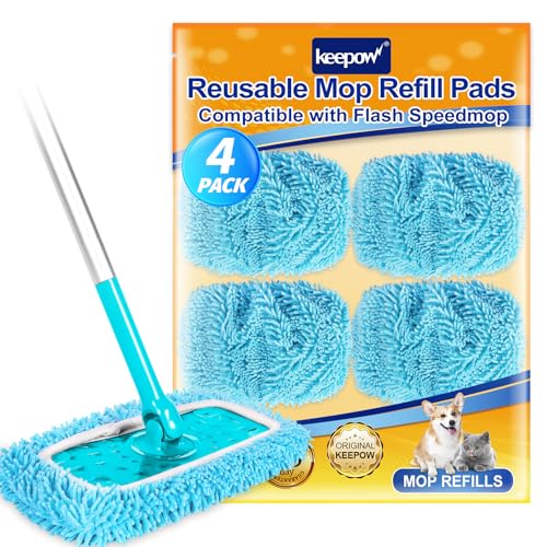 KEEPOW Reusable Pads for Flash Speed Mop Refill Wipes, Microfiber Wet Dry Refills for Flash Speed Mop Starter Kit, Machine Washable Up to 100x (4 Pack)