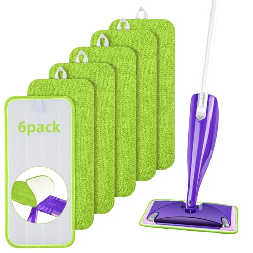Spray Mop Refill Pads for Flash Powermop, 6PCS Microfibre Mop Pads Washable for Household Wet Dry Floor Mop, Reusable Mop Head Replacement for Hardwood Laminate Floor Cleaning