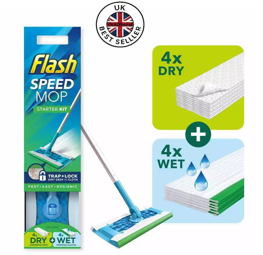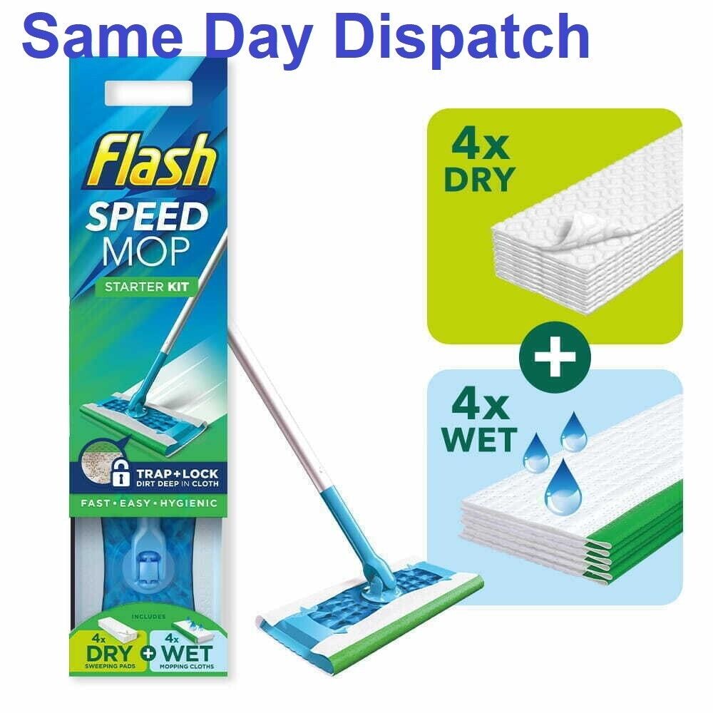 FLASH Speed Mop Starter Kit 4 Dry Sweeping Pads 4 Wet Mopping Cloths Refill