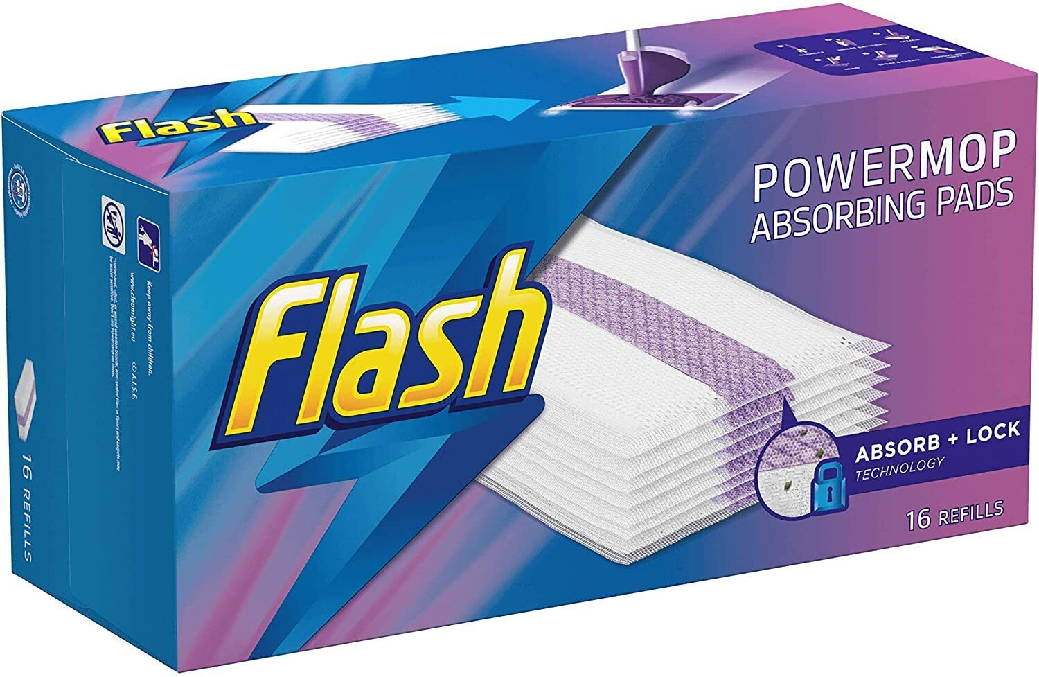 Flash Power Mop 16 Refill Cleaning Pads Absorbent Cloths Powermop