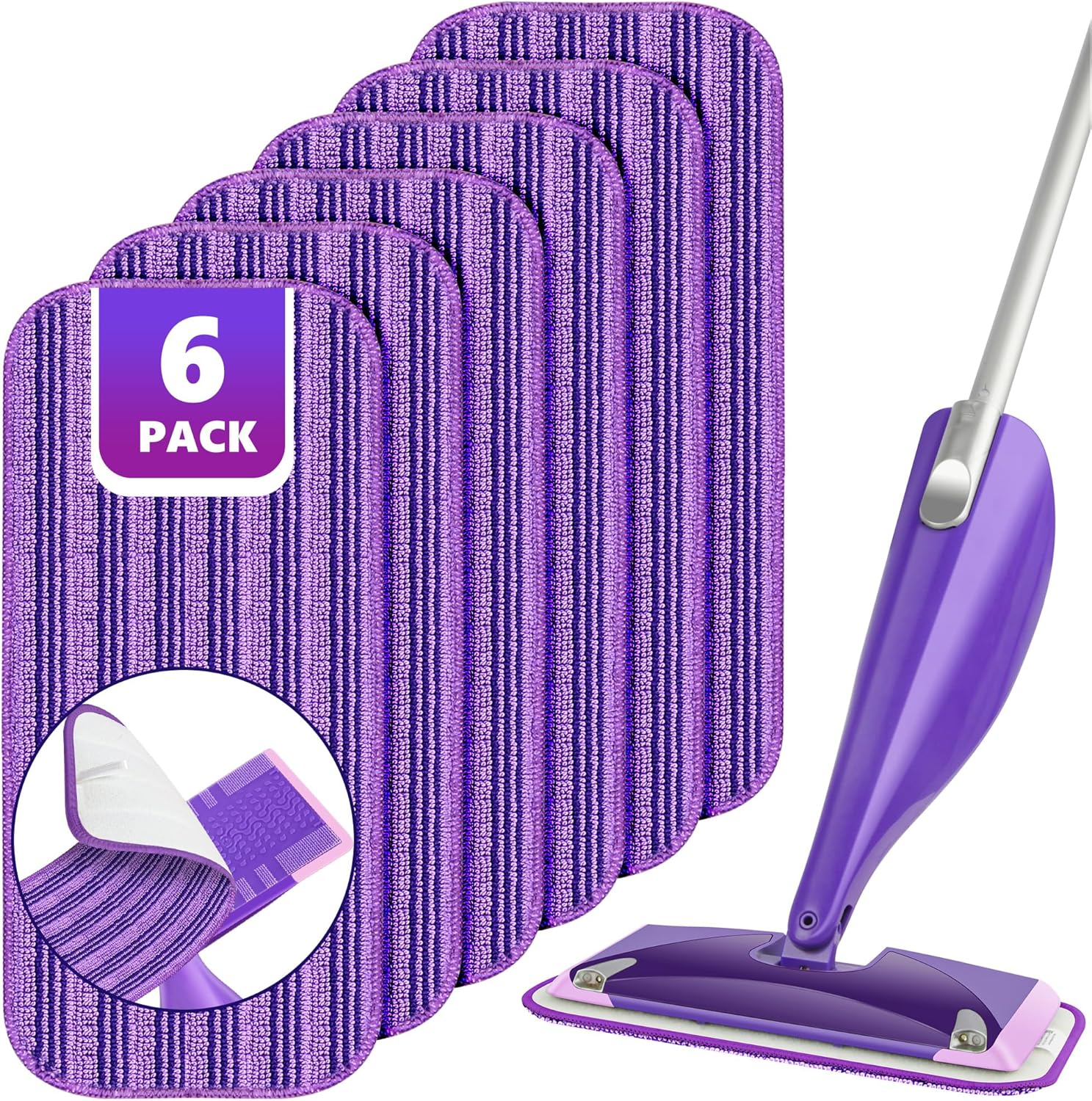 Reusable Mop Pads Refills for Flash Powermop - Microfiber Mop Replacement Pads for Swiffer Wet Jet Spray Mop, Dry Wet Pads Refills for Swiffer Mop, Washable Spray Mop Heads for Floor Cleaning, 6 Pack