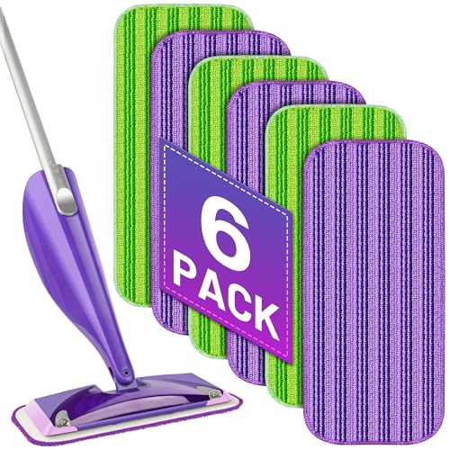 Reusable Mop Refill Pads for Flash Powermop: 6 Pack Microfibre Wet Wipes Dry Cloths Replacements for Power Spray Mop & Swiffer WetJet - Household Kitchen All Purpose Floor Cleaning