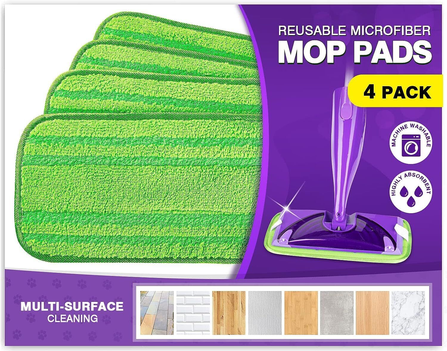 Spray Mop Refill Pads for Flash Powermop, 4PCS Microfibre Mop Pads Washable for