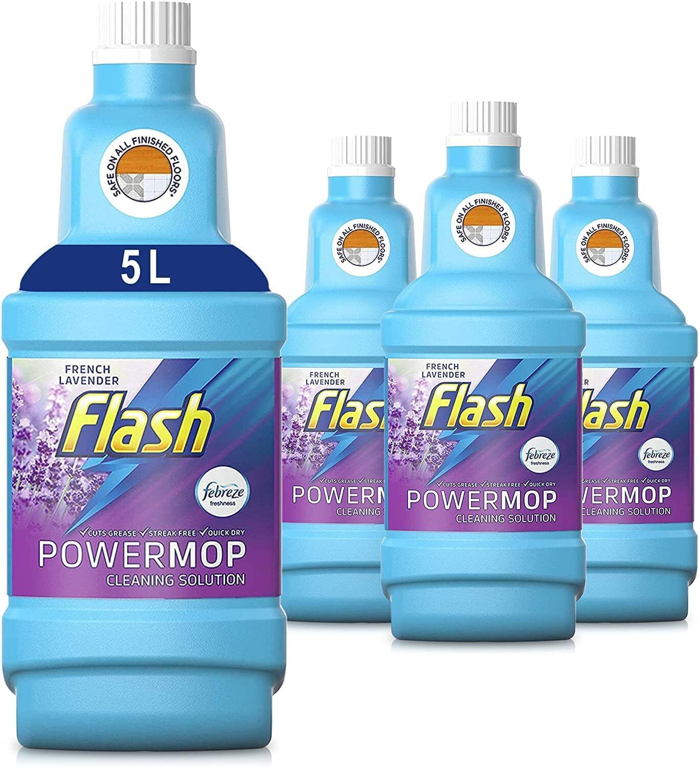 Flash Powermop Refill Liquid, Floor Cleaner, Lavender, 5 Litres (1.25 L x 4)