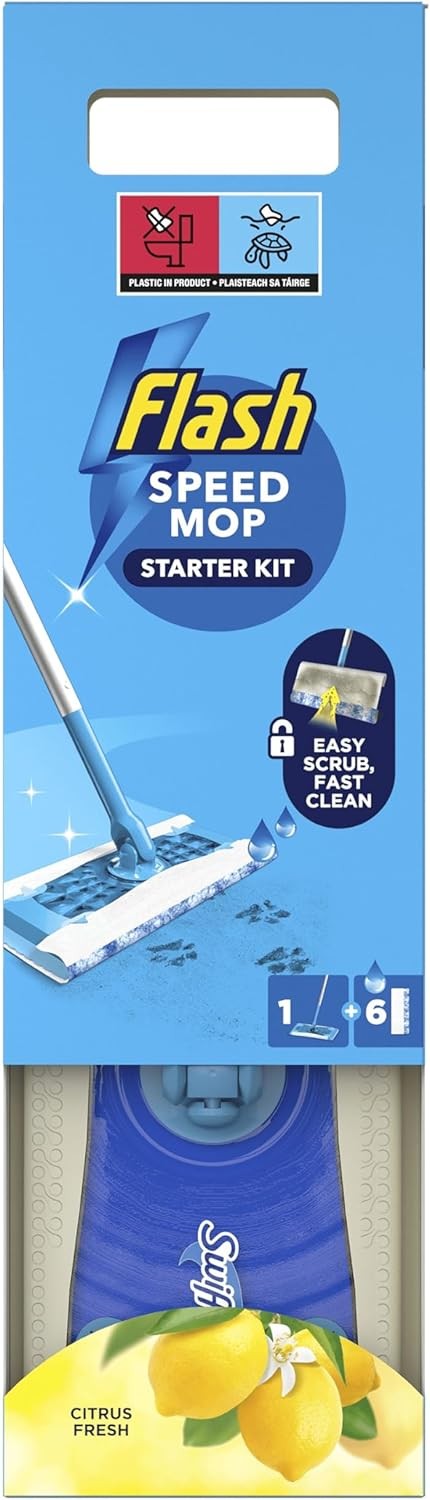 Flash Speedmop Floor Cleaner Starter Kit: 1 Handle, 4 Wet + 16 Dry Refills, Swivel Head, Hygienic Wet & Dry Cleaning - Product Code 8.70E+12