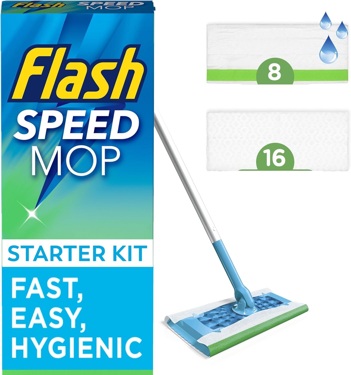 Flash Speedmop Starter Kit with 1 Handle, 8 Wet and 16 Dry Refills for Floor Cle