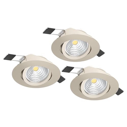 Eglo Set of 3 LED recessed spotlights Saliceto, dimmable Flat Round Ceiling Lights, Silver Aluminium, Warm White, Ø 8.8 cm