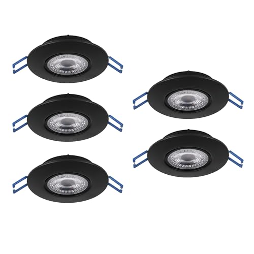 Eglo Set of 5 LED recessed spotlights Cedrez, Ø 9 cm, Ultra-Flat Ceiling Spots, Lights with dip Switch, Black Plastic, Warm, Neutral, Cool White