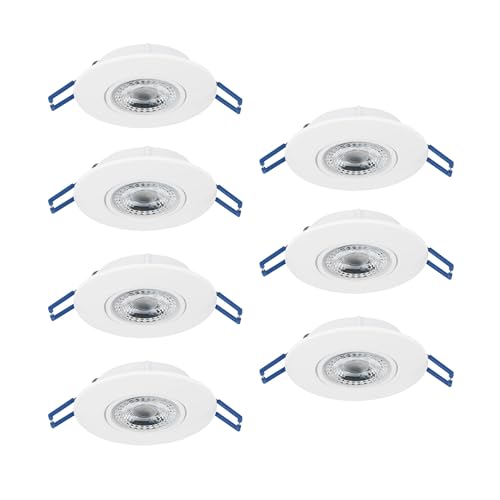 Eglo Set of 7 LED recessed spotlights Cedrez, Ø 9 cm, Ultra-Flat Ceiling Spots, Lights with dip Switch, White Plastic, Warm White, Neutral Cool