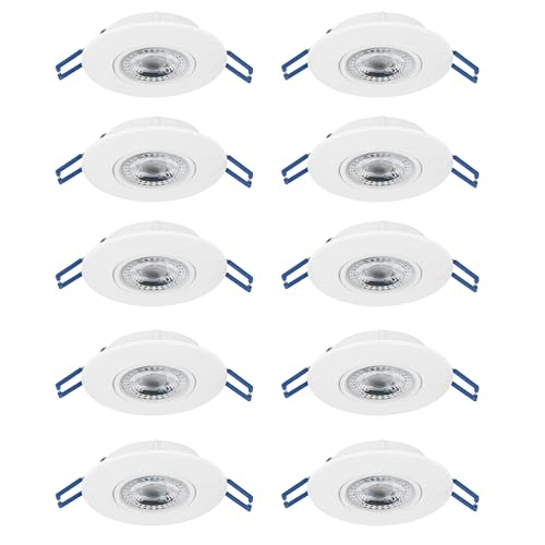 Eglo Set of 10 LED recessed spotlights Cedrez, Ø 9 cm, Ultra-Flat Ceiling Spots, Lights with dip Switch, White Plastic, Warm White, Neutral Cool