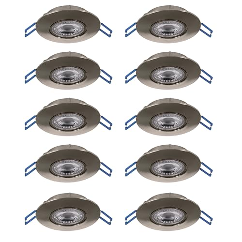Eglo Set of 10 LED recessed spotlights Cedrez, Ø 9 cm, Extra-Flat Ceiling Spots, Lights with dip Switch, Silver Plastic, Warm White, Neutral Cool White