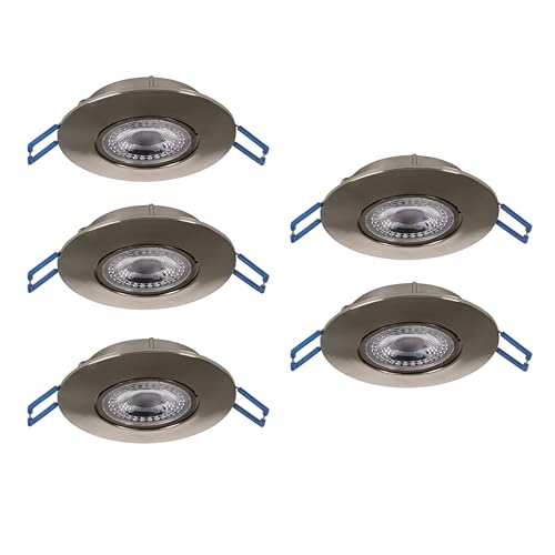 Eglo Set of 5 LED recessed spotlights Cedrez, Ø 9 cm, Extra-Flat Ceiling Spots, Lights with dip Switch, Silver Plastic, Warm White, Neutral Cool White