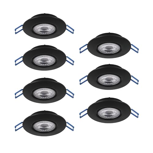Eglo Set of 7 LED recessed spotlights Cedrez, Ø 9 cm, Ultra-Flat Ceiling Spots, Lights with Dip Switch, Black Plastic, Warm White, Neutral Cool White