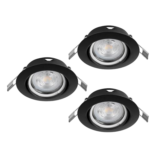 Eglo Set of 3 LED recessed spotlights Favazzina, Round Flat Metal Ceiling Lights in Black, incl. GU10 Bulbs, Warm White, Ø 8.8 cm