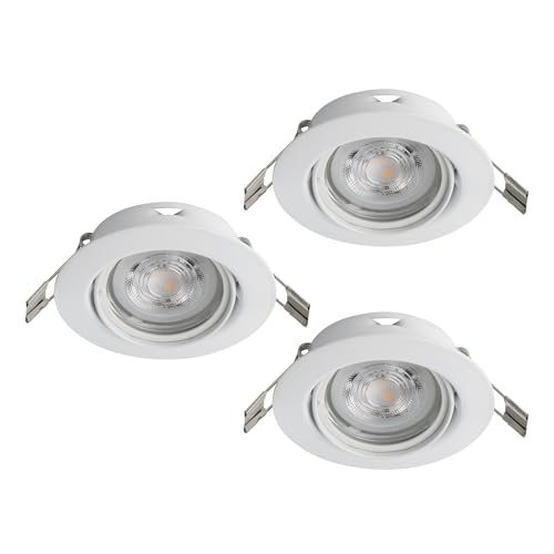 Eglo Set of 3 LED recessed spotlights Favazzina, Round Flat Metal Ceiling Lights in White, incl. GU10 Bulbs, Warm Ø 8.8 cm