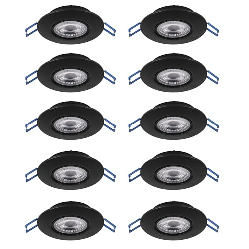 Eglo Set of 10 LED recessed spotlights Cedrez, Ø 9 cm, Extra-Flat Ceiling Lights with dip Switch, Black Plastic, Warm White, Neutral Cool White