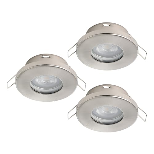 Eglo Set of 3 LED recessed spotlights Favazzina, Round Flat Ceiling Lights in Silver Metal, incl. GU10 Bulbs, Warm White, Ø 8.5 cm