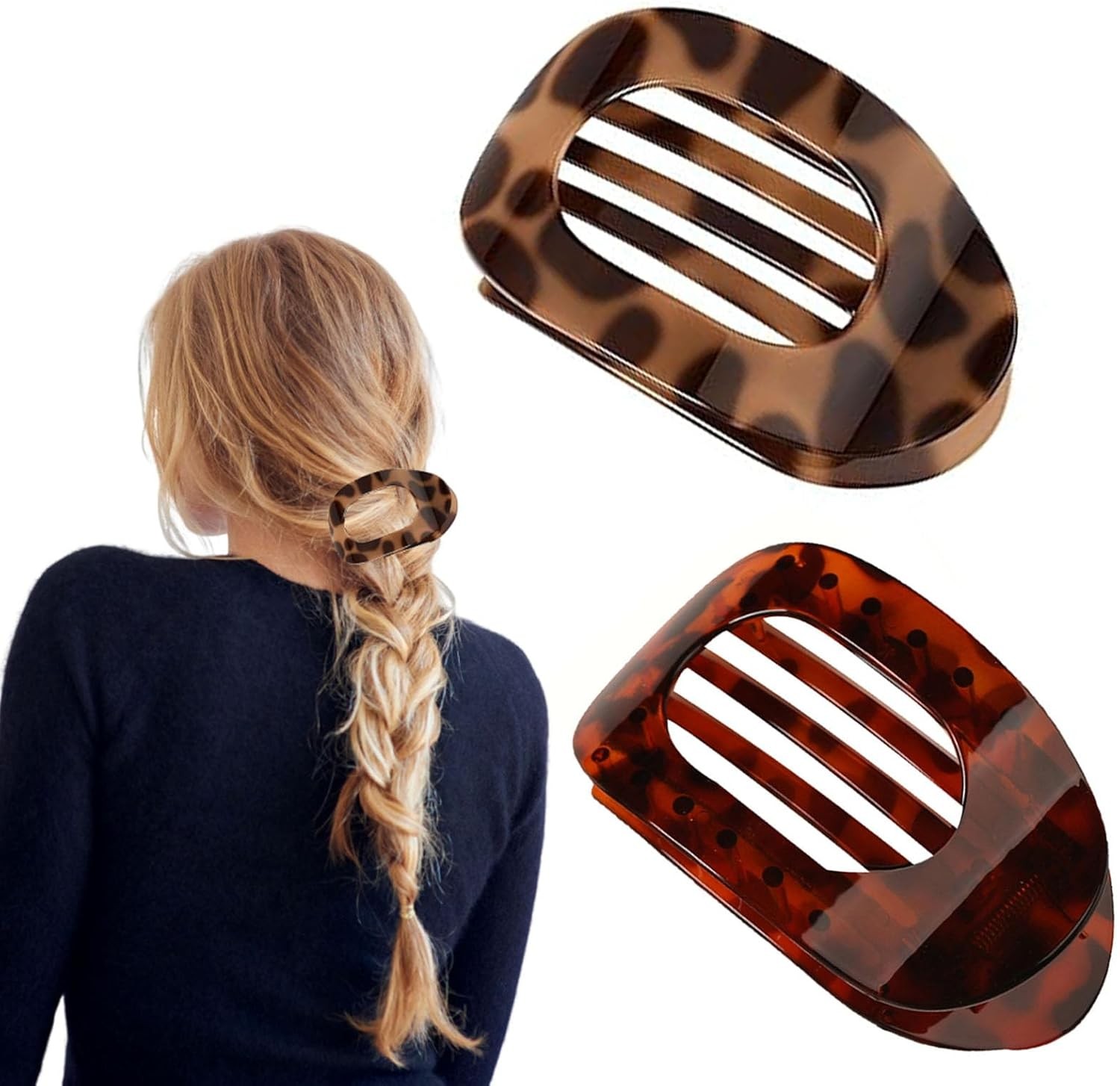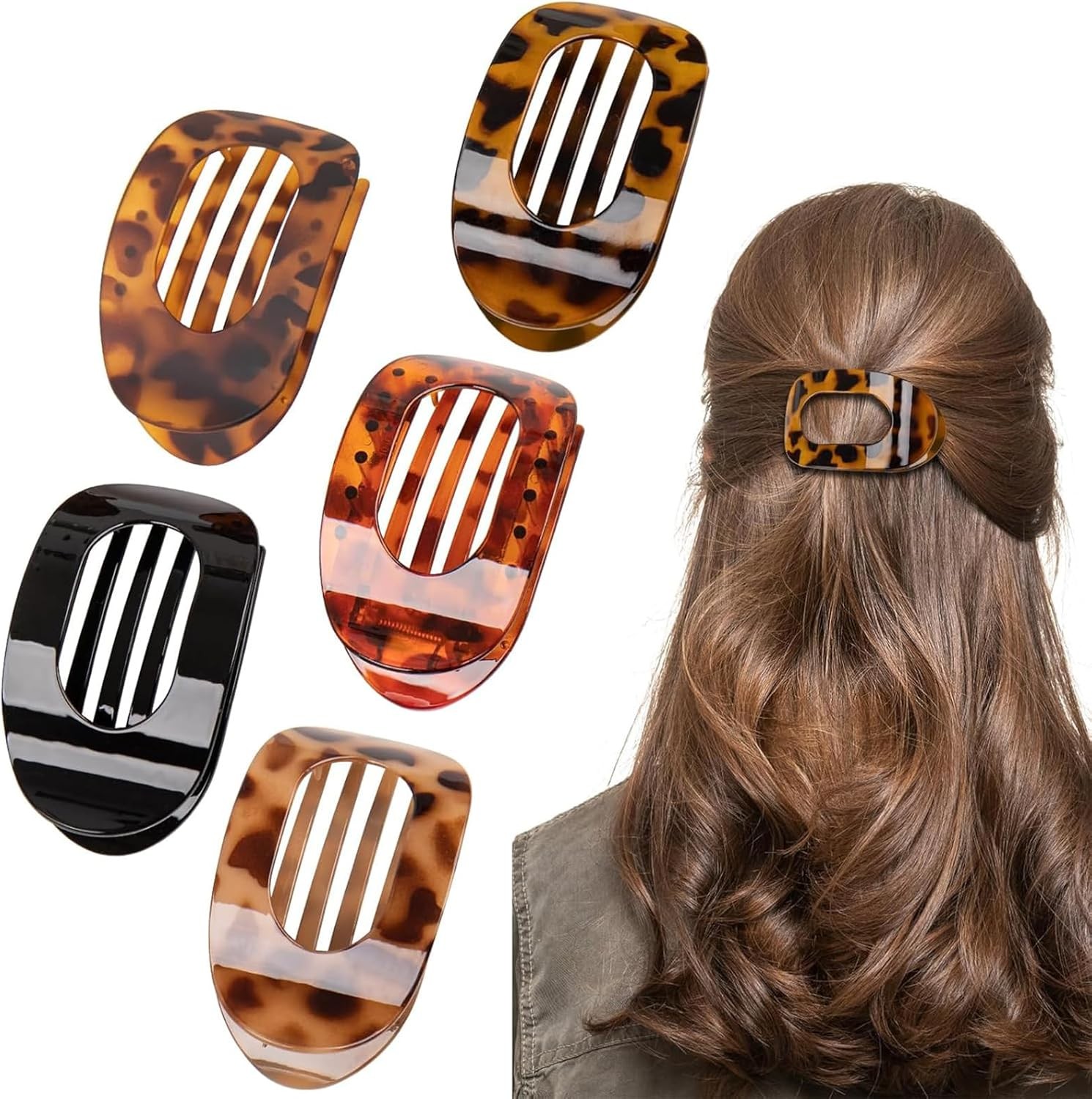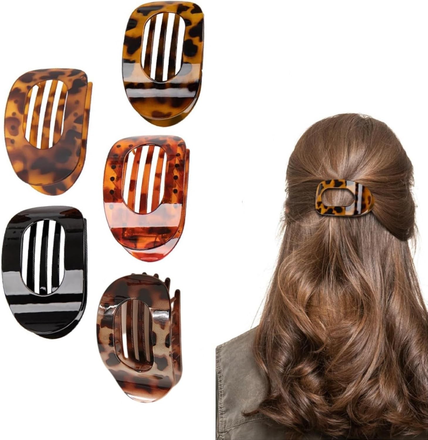 5PCS Flat Claw Clip, Flat Hair Clips for Women Fine Hair, Leopard Print Oval, S