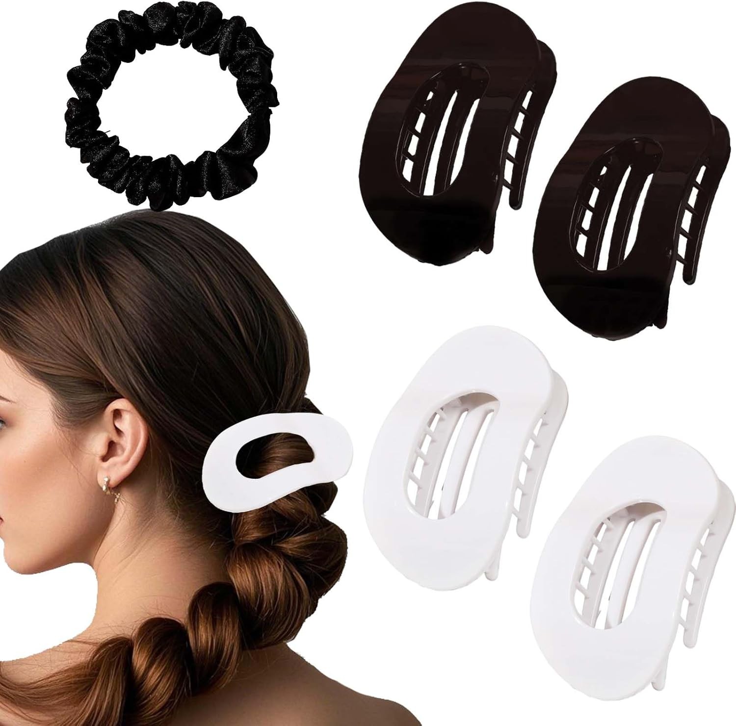 Flomiara 4PCS Hair Clips for Women, Flat Claw Clips for Lying, Non-Slip Clip fo