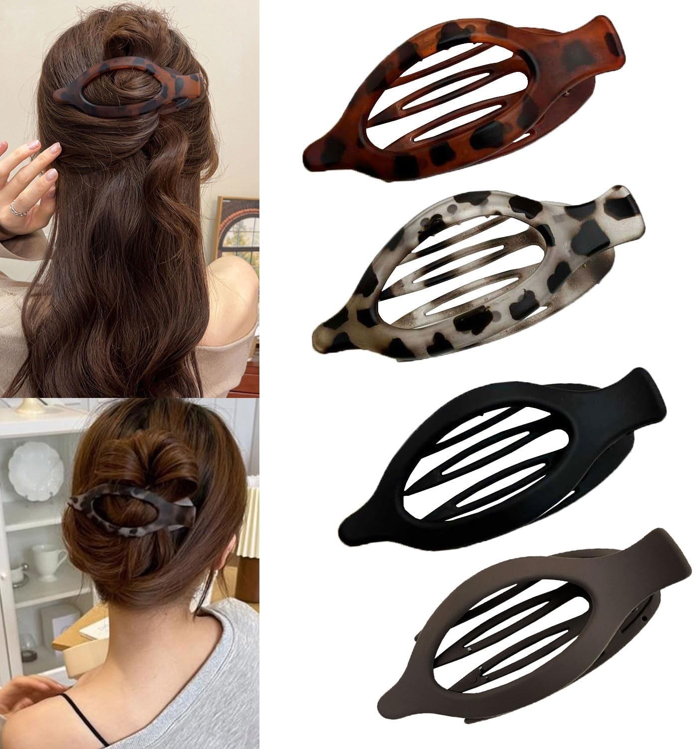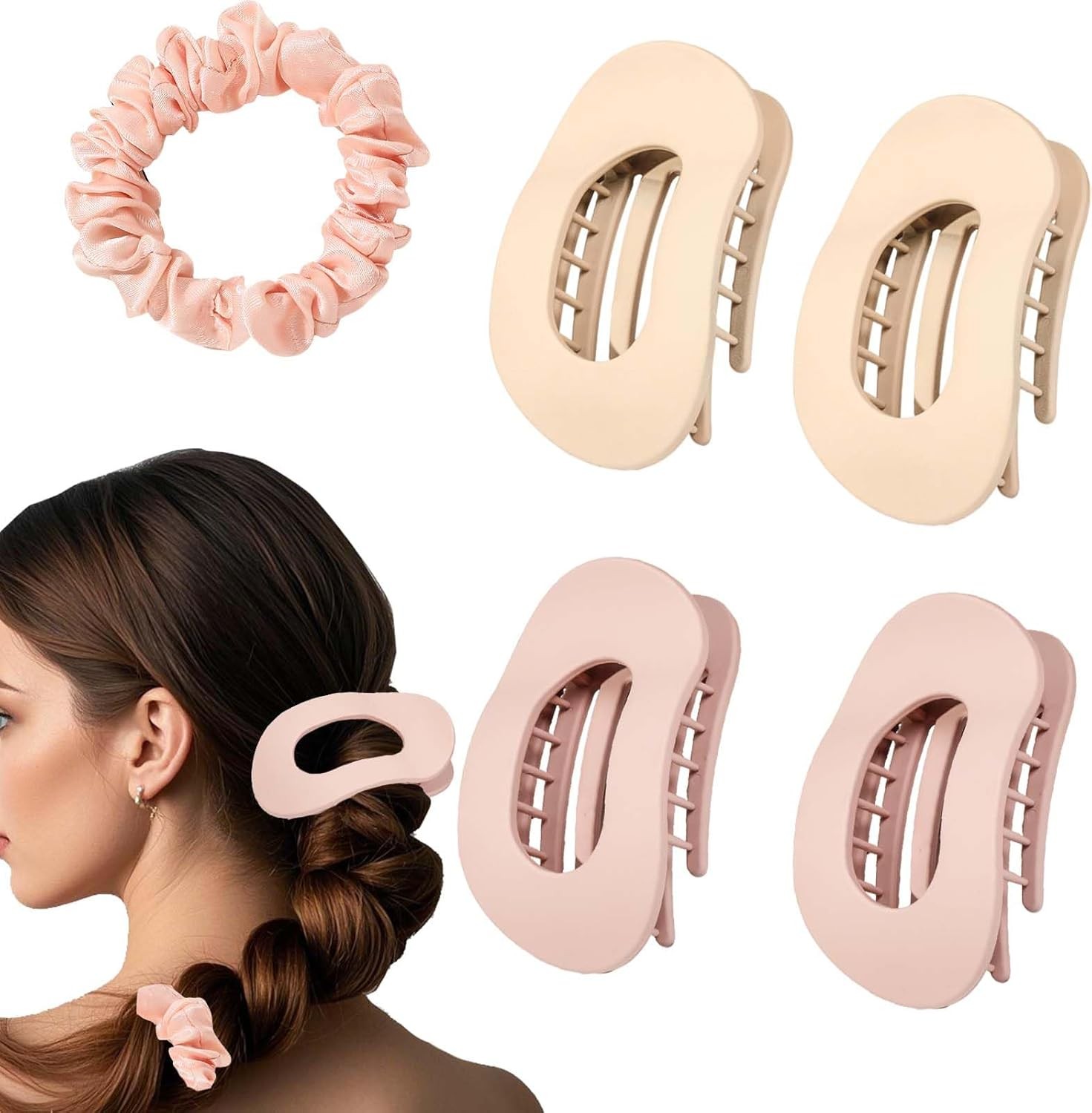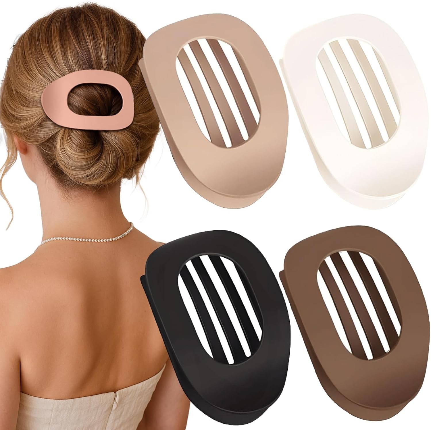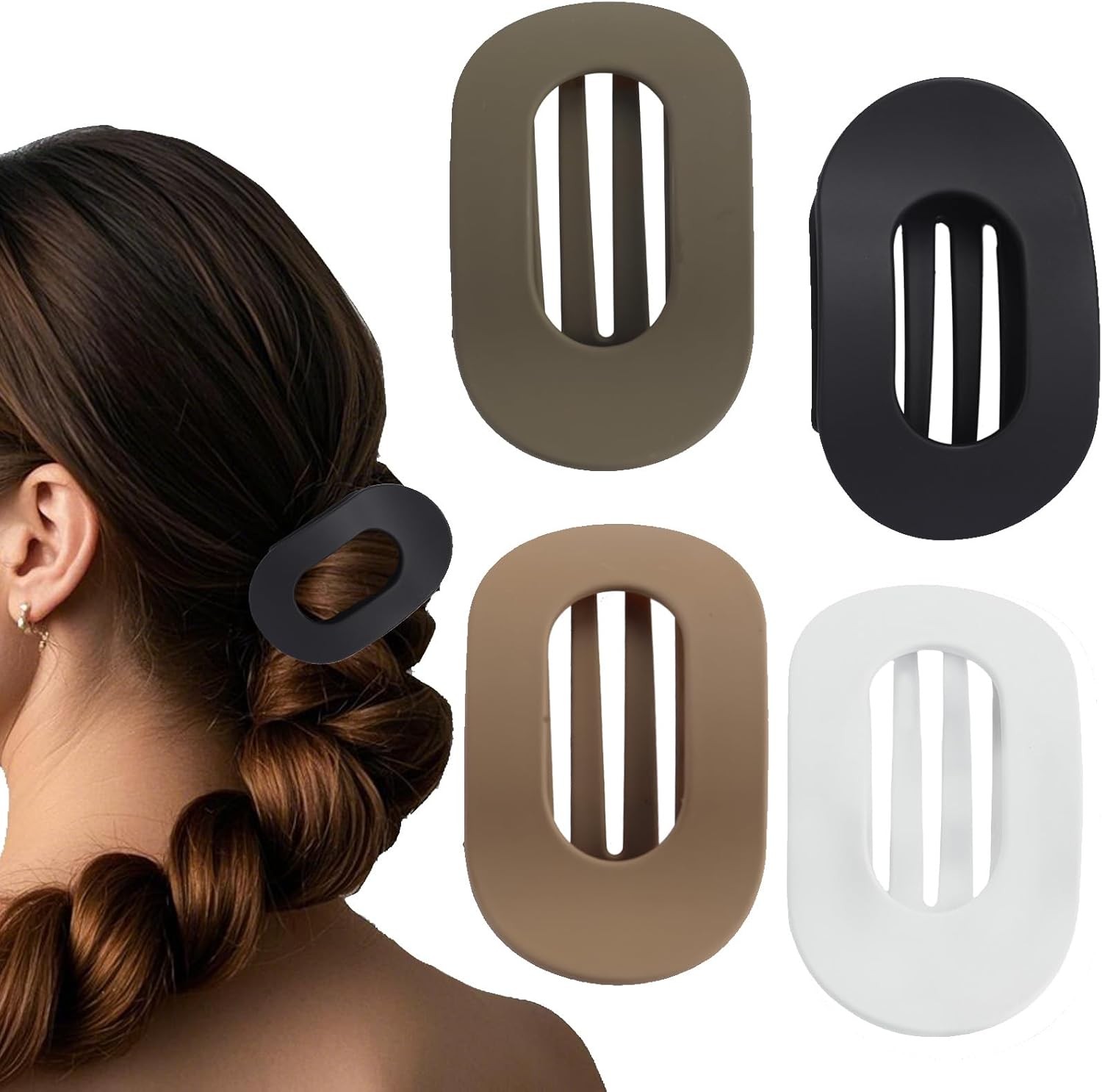 Flomiara 4PCS Flat Claw Clip, Oval Hair Clips for Thick Thin & Fine Hair Women