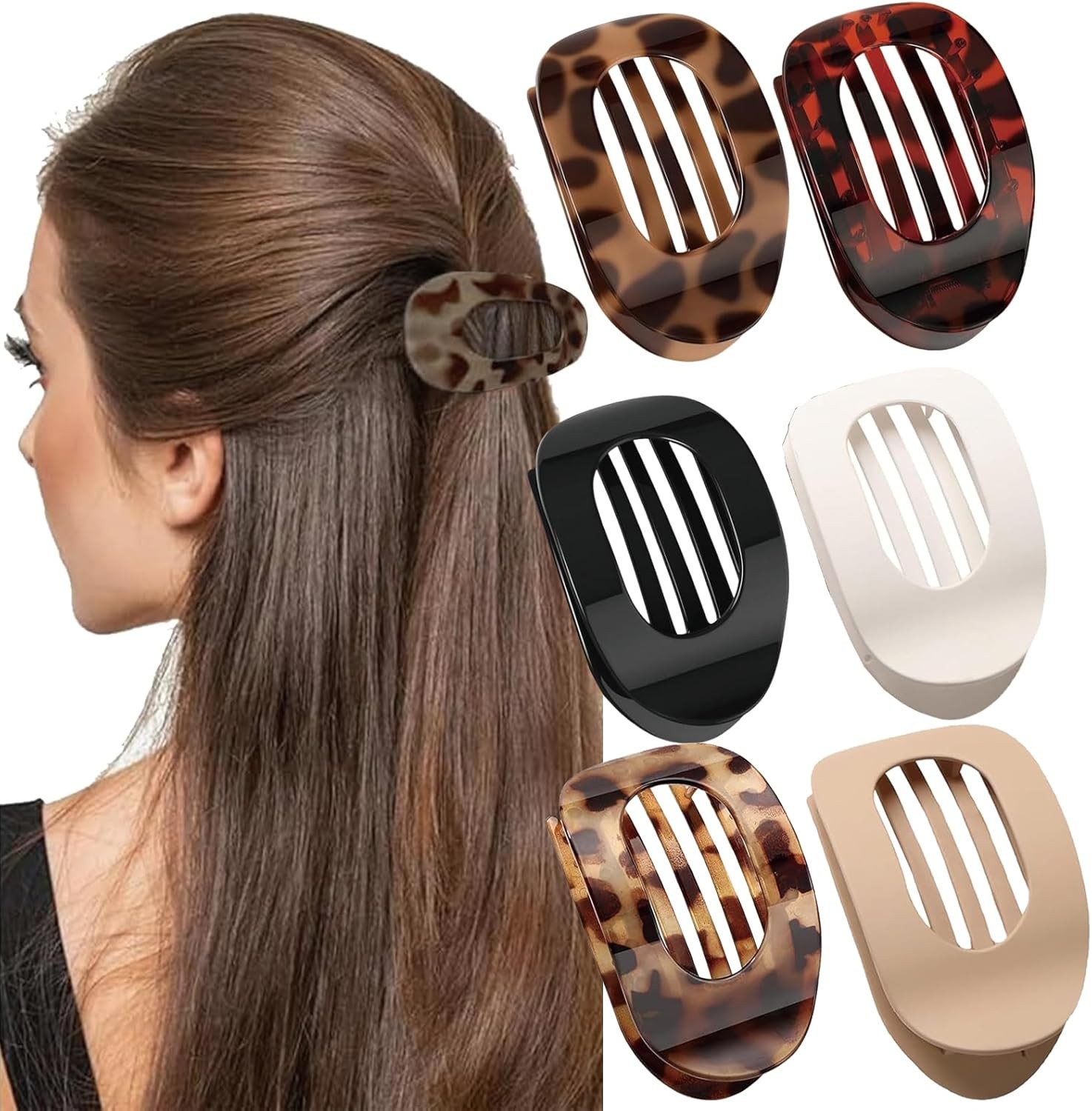 6Pcs Flat Hair Claw Clips, Lay Flat Hair Clip for Women, Strong Hold Hair Claw