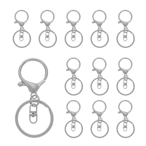 uxcell Lobster Claw Clasps Keychain, 12 Pcs Lobster Claw Clasp Hook with Swivel Trigger Clip and Flat Split Keychain Ring for DIY Craft Key Chain Accessories, Grey
