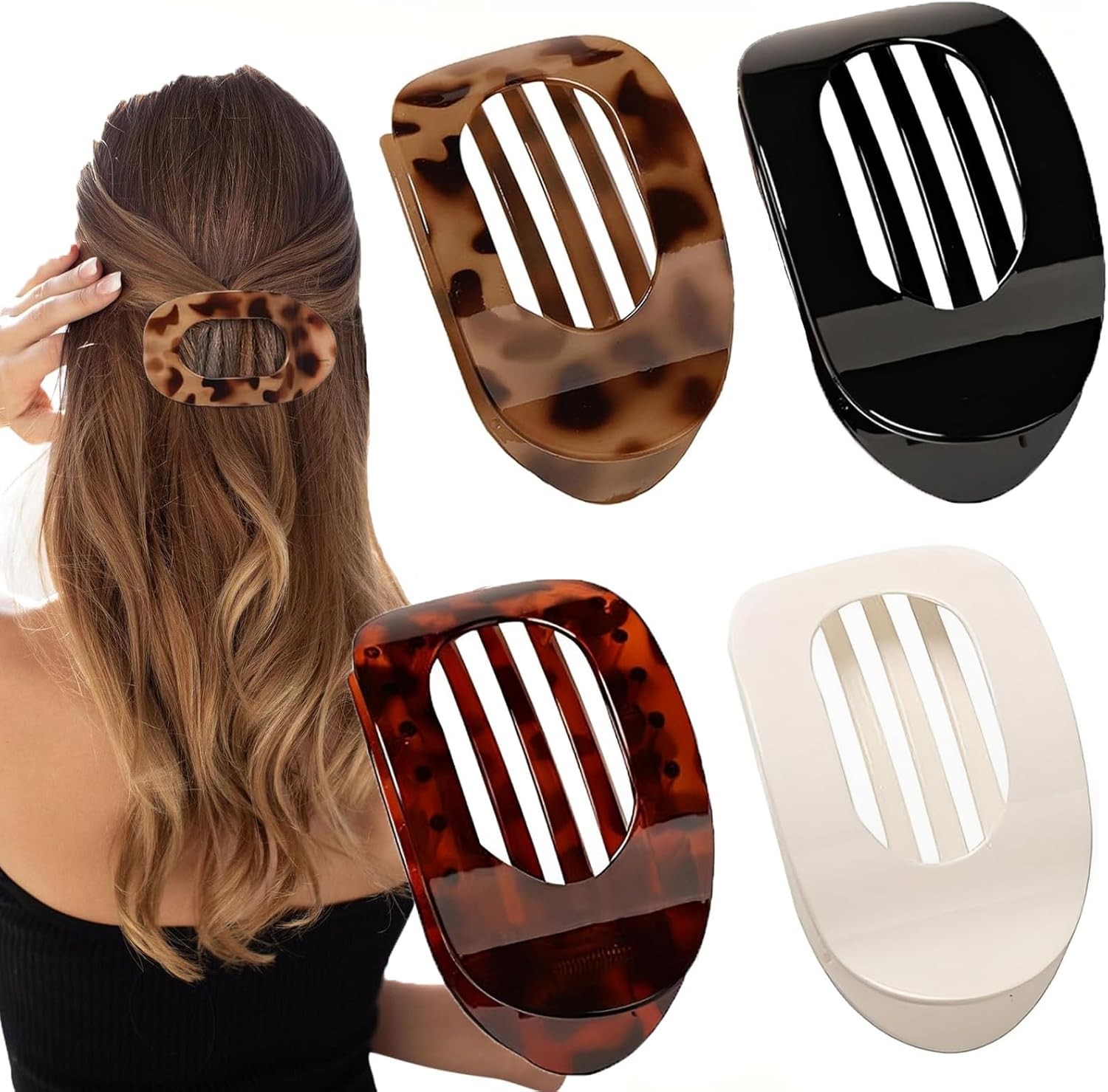 Flat Claw Clip, Flat Hair Claw Clips, 4 PCS Curved Design French Barrette Acces