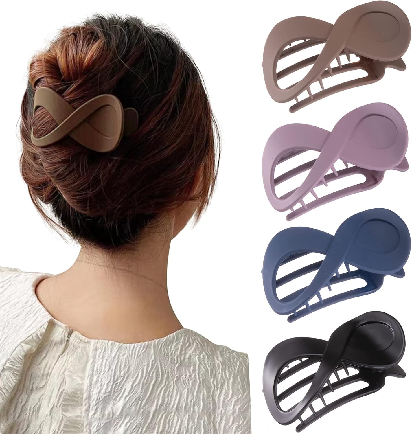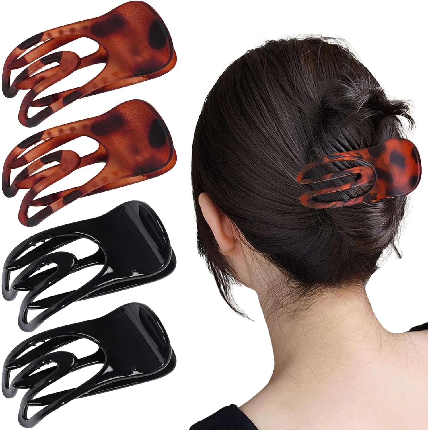 Flomiara 4PCS Flat Claw Clip, Concave Hair Clips for Thick Thin & Fine Hair Wom