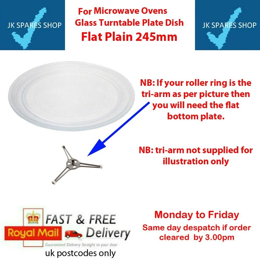 FITS DAEWOO MICROWAVE WITH 245MM GLASS TURNTABLE PLATE FLAT BASE NO PIPS 34068