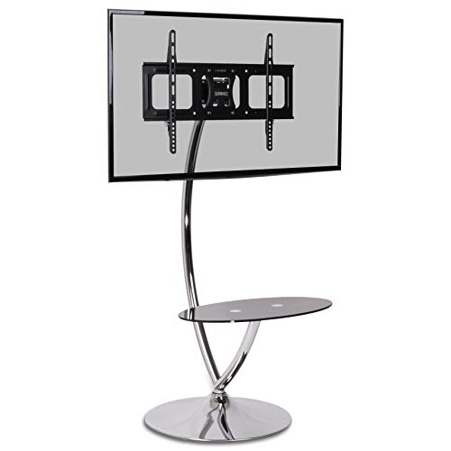 Duronic TV Stand Chrome & Glass Stand for 30” -80” Flat Screen Television LCD/LED/OLED/QLED, With Tilt & Swivel, VESA Up to 600x400, Capacity, With Media Shelf (TVS3F1)
