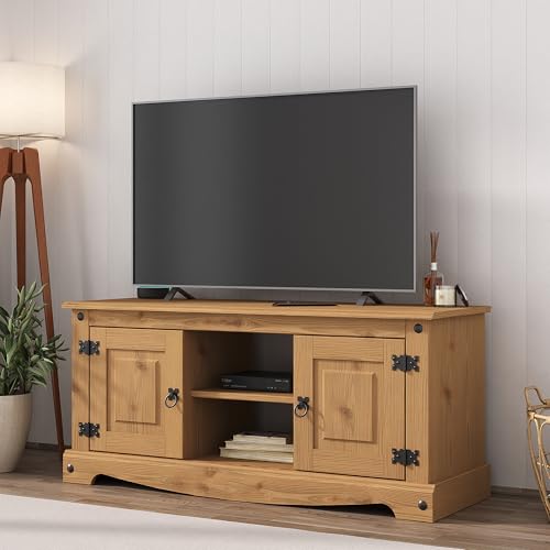 Corona TV Stand Flat Screen Entertainment Unit Solid Pine 2 Door Television Cabinet Mexican Waxed