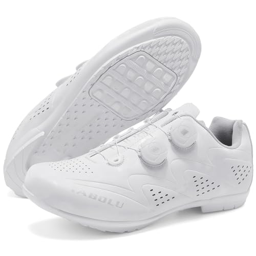 TvzsiY Cycling Shoes Flat Mens Road MTB Bike Bicycle Shoes, Breathable Holes No-Lock Rubber Soled Spin Bike for Indoor,White,4 UK