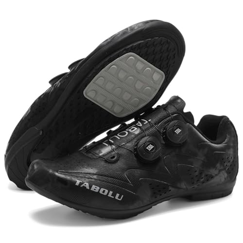 TvzsiY Mens No-Lock Cycling Shoes Indoor Breathable Non-Slip Bicycle Shoes Outdoor Sports Riding Shoes Flat Pedal for MTB Bicycle Road Bike Shoes,Black,6 UK
