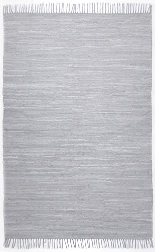 Theko Dhurry Rug 100% Cotton Flat Weave Rug Happy Cotton Handwoven Colour: Grey 120 x 180 cm