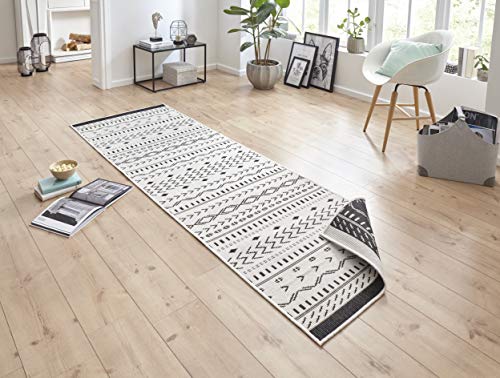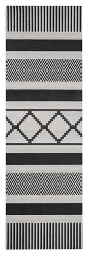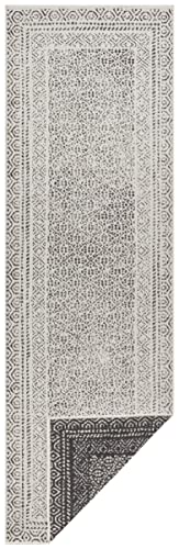 Hanse Home Bougari Palma Outdoor Rug Flat Weave Reversible Rug (80 x 250 cm, 100% Polypropylene, Durable and Easy to Clean, UV and Moisture Resistant, Suitable for Underfloor Heating), Black Cream
