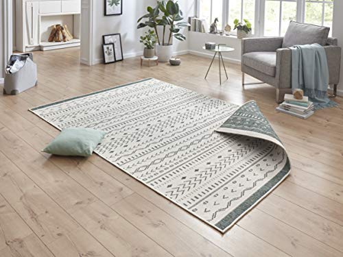 bougari Outdoor Rug Flat Weave Reversible Rug Cuba (120 x 170 cm, 100% Polypropylene, Durable and Easy to Clean, UV and Moisture Resistant, Suitable for Underfloor Heating), Green Cream