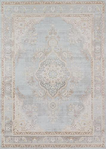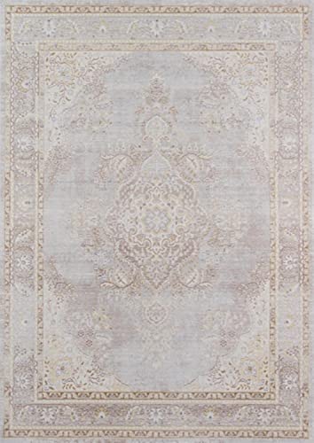 Zala Living Glorious Orient Rug - Oriental Rug Orient Design Tightly Woven Vintage Short Pile Flat Weave Living Room Rug for Dining Room, Living Room, Bedroom - Grey Cream, 140 x 200 cm