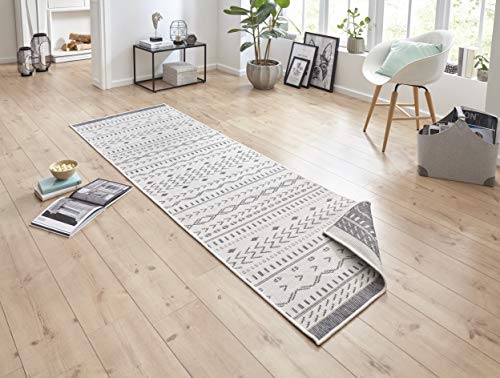 Hanse Home Bougari Jardin Flat Weave Reversible Rug for Indoor and Outdoor Use, Grey Cream, 80 x 350 cm