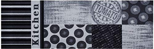Zala Living Cook & Clean Runner - Non-Slip Rug Runner Flat Weave Short Pile Rug Kitchen Rug Washable Kitchen Runner Tomato Kitchen for Hallway, Kitchen, Living Room - Black Grey, 50 x 150 cm